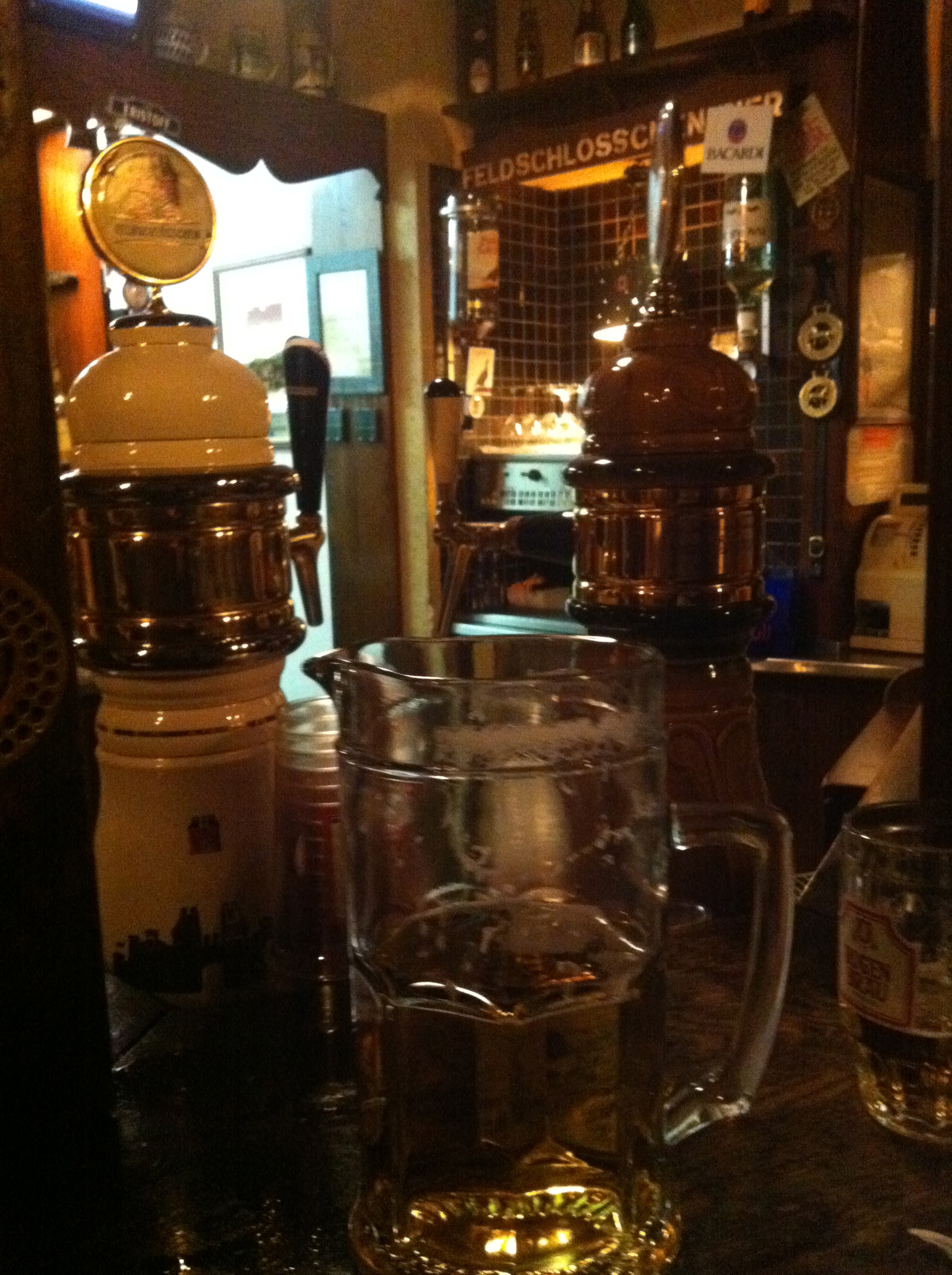 Das Licht im Raum ist gedämpft. Die Scheiben lassen nur spärlich Sonnenstrahlen oder zu später Stunde den Schein der Strassenlaternen herein. Auf zahlreichen Regalen stehen alte Bierflaschen und antike Bücher, in denen seit Jahrzehnten keiner mehr gelesen hat. An den Wänden hängen Bilder, Plakate und Spiegel. Darunter stehen alte Holztische, daran alte oft geflickte Holzstühle mit Sitzkissen, deren Farbe schon lange verblasst ist. In der Ecke ein etwas grösserer Tisch – der Stammtisch. Und gleich daneben: die Theke. Das alte robuste Holz trotzt den Jahren, den zahlreichen Flüssigkeiten, die darauf verschüttet oder gar angezündet wurden, den ungezählten Fausthieben, die darauf hämmerten während zahlreichen erhitzten Diskussionen, den Zigaretten, die darauf ausgedrückt wurden, und all den anderen Widrigkeiten, denen Bartheken auf der ganzen Welt ausgesetzt sind.